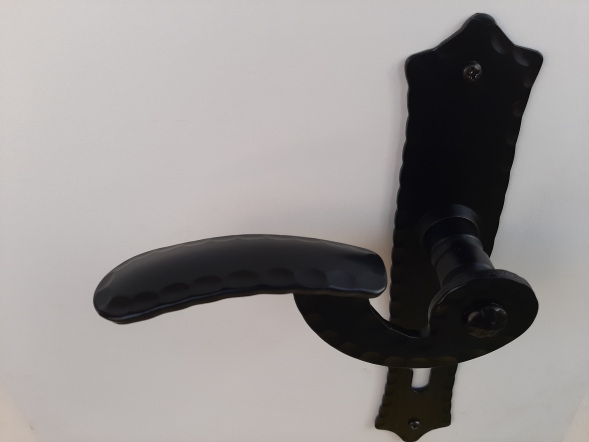 Kovana kvaka APOLON sa štitom AMOR . Glatka , bez ukrašavanja , klasičan model . Debljina materijala 5 mm.